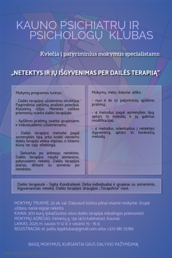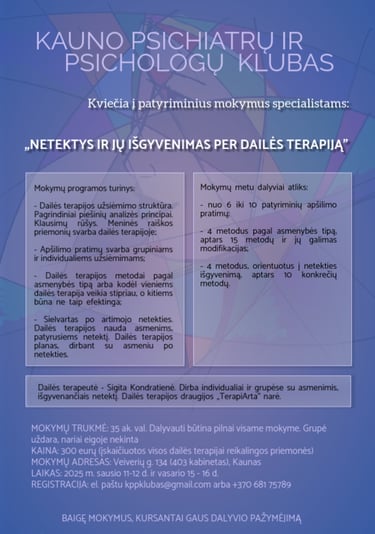 Mokymus organizuoja: KAUNO PSICHIATRŲ IR PSICHOLOGŲ KLUBAS